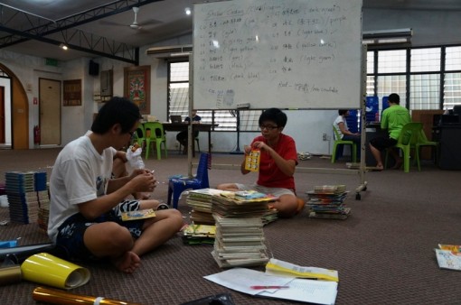 本馆儿童部从去年10月开始关闭进行重整及规划。原本估计是2013年就可以重新开放,但没想到工程十分浩大,而且我们除了一位全职的图书管理员,其它多为义工。图书馆理员平时有自己的例常工作,加上本馆前阵子又增添了不少新的绘本、少年读物等。义工们则平时要上班上课,只有周末或假日才有时间来处理图书馆的事宜。好不容易,书架修理了,重新上色,也粗略地把书籍分类。上周末终于能开始把书籍按分类编号存档并贴上标签。希望很快就能重新开放儿童部!
